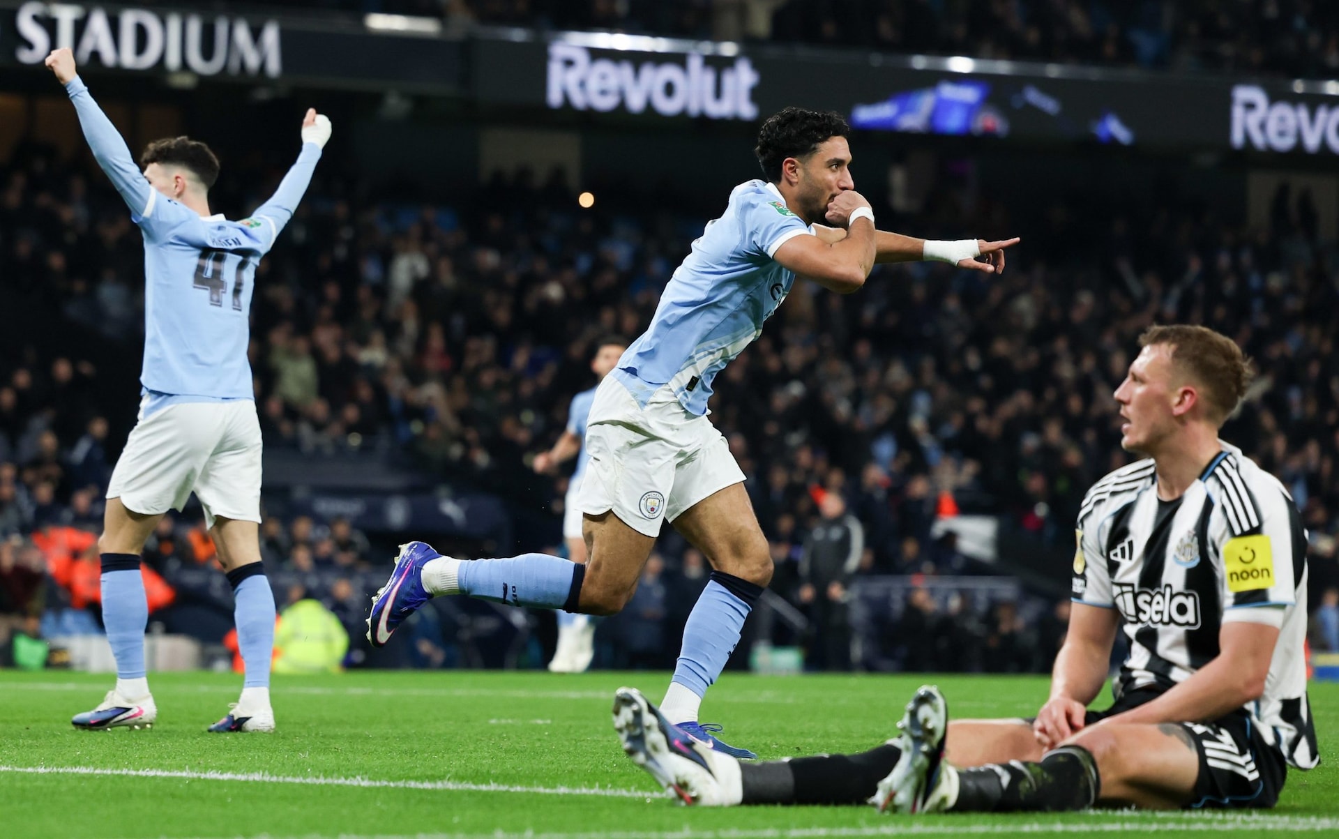 Wissa goes down looking for a penalty after Alleyne stands on the ball in his own penalty area, but the referee is unmoved. Then City go down the other end and almost score their fourth of the night, with Reijnders and Marmoush the combination yet again. This time, Reijnders did not hit the target. No penalty for Newcastle after a VAR check.